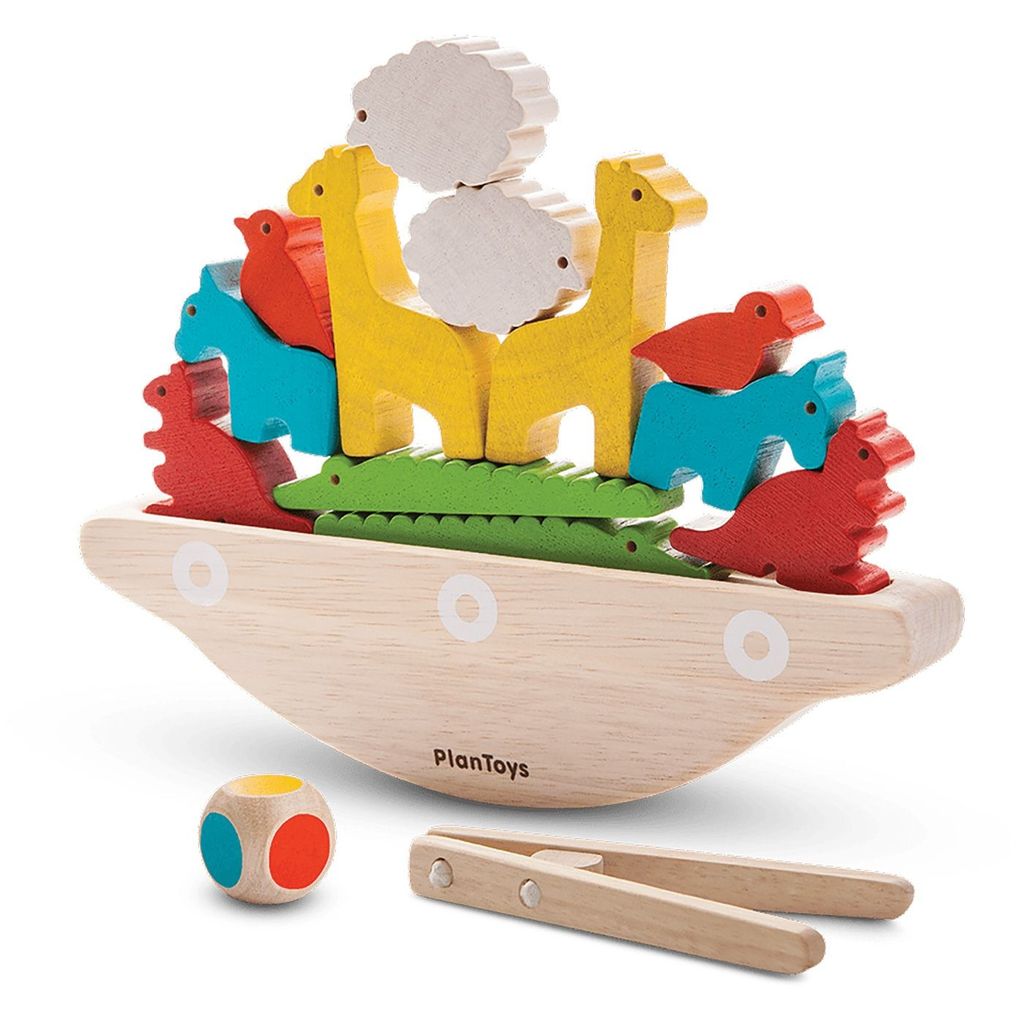 Det här spelet från PlanToys kommer i form av en balansbåt i trä. Spelet går ut på att tärningen kastas när det är ens tur och då ska ett djur ställas på balansbåten som har samma färg som tärningen visar. Spelet går även att spela och leka med utan medspelare även om det så klart är roligare. Målsättningen är att djuren inte ska ramla. Spelet är anpassat för 1-4 spelare. I spelet ingår enligt nedan.