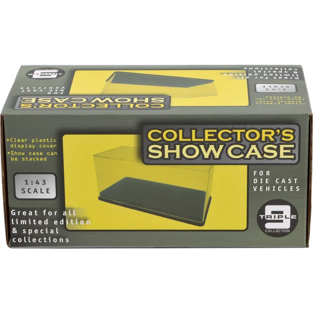 Plastbox (Show Case) med bottenplatta för bilar i skala 1:43 från Triple9 Collection.