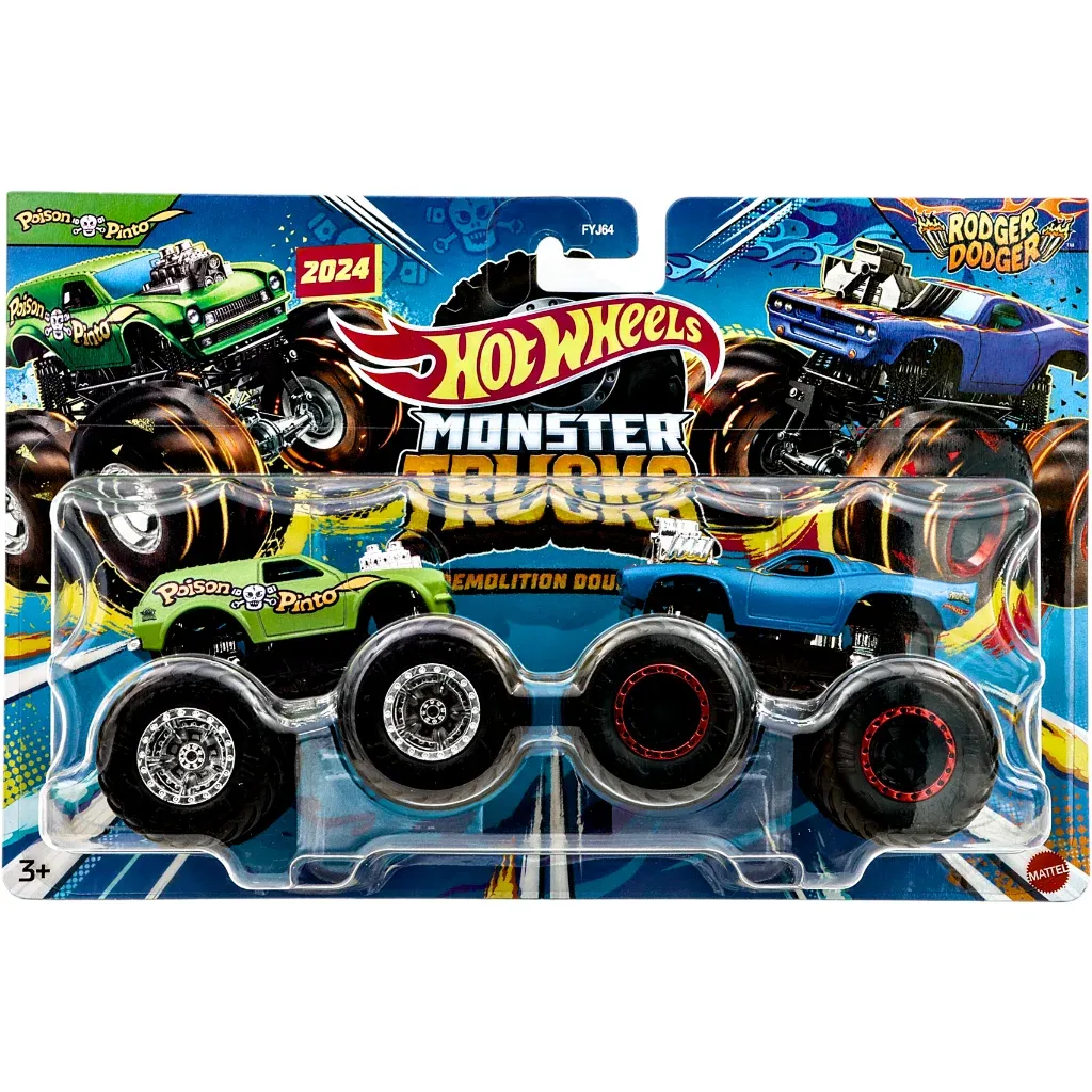 2-pack med monster trucks från Hot Wheels. I detta pack ingår truckarna Poison Pinto och Rodger Dodger.