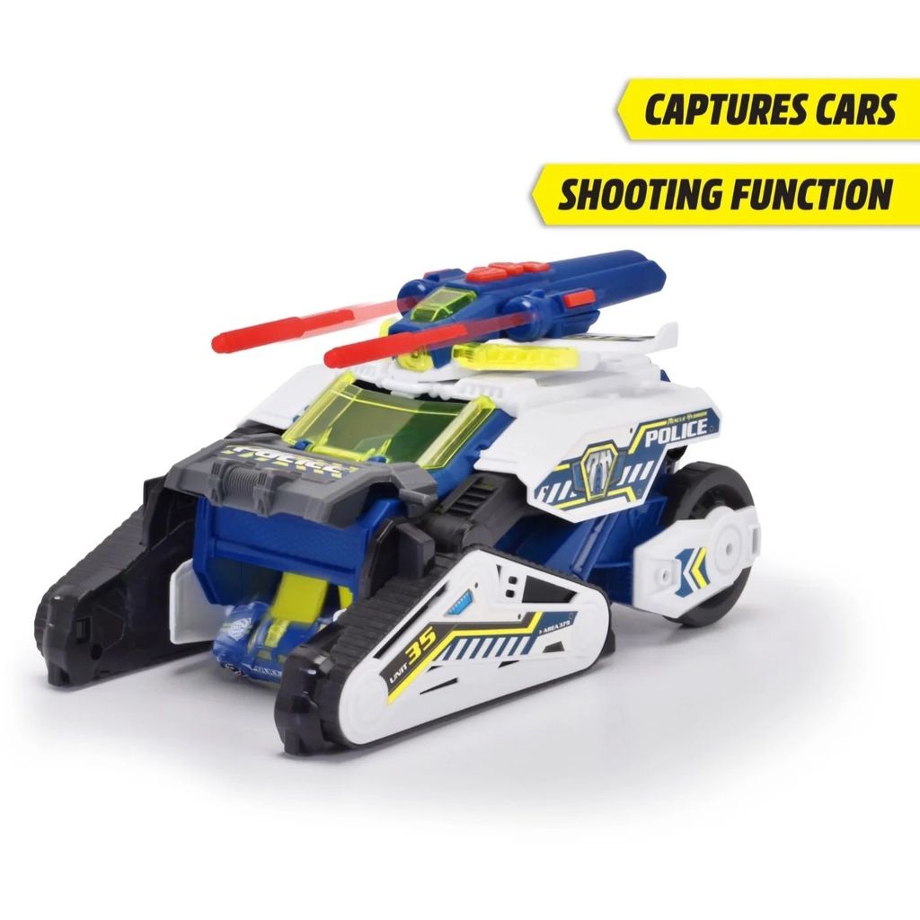 Denna polisrobot kan kombineras och "dockas" med andra produkter ur serien Rescue Hybrids från Dickie Toys. Se bilder där denna polisrobot dockas med brandbilen Fire Tanker.
