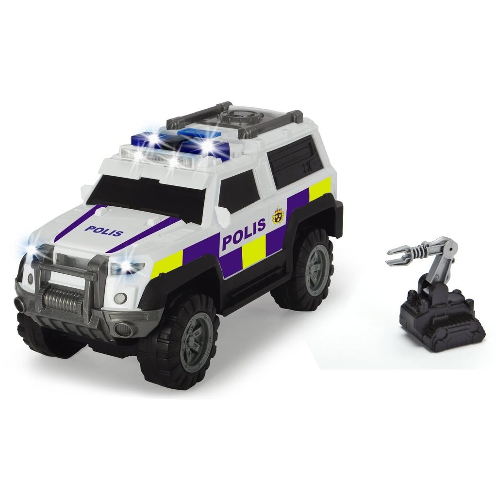 Polis-SUV från Dickie Toys med ljud- och ljusfunktion. Med bilen följer en bombrobot som kan transporteras i polisbilen under utryckning.
