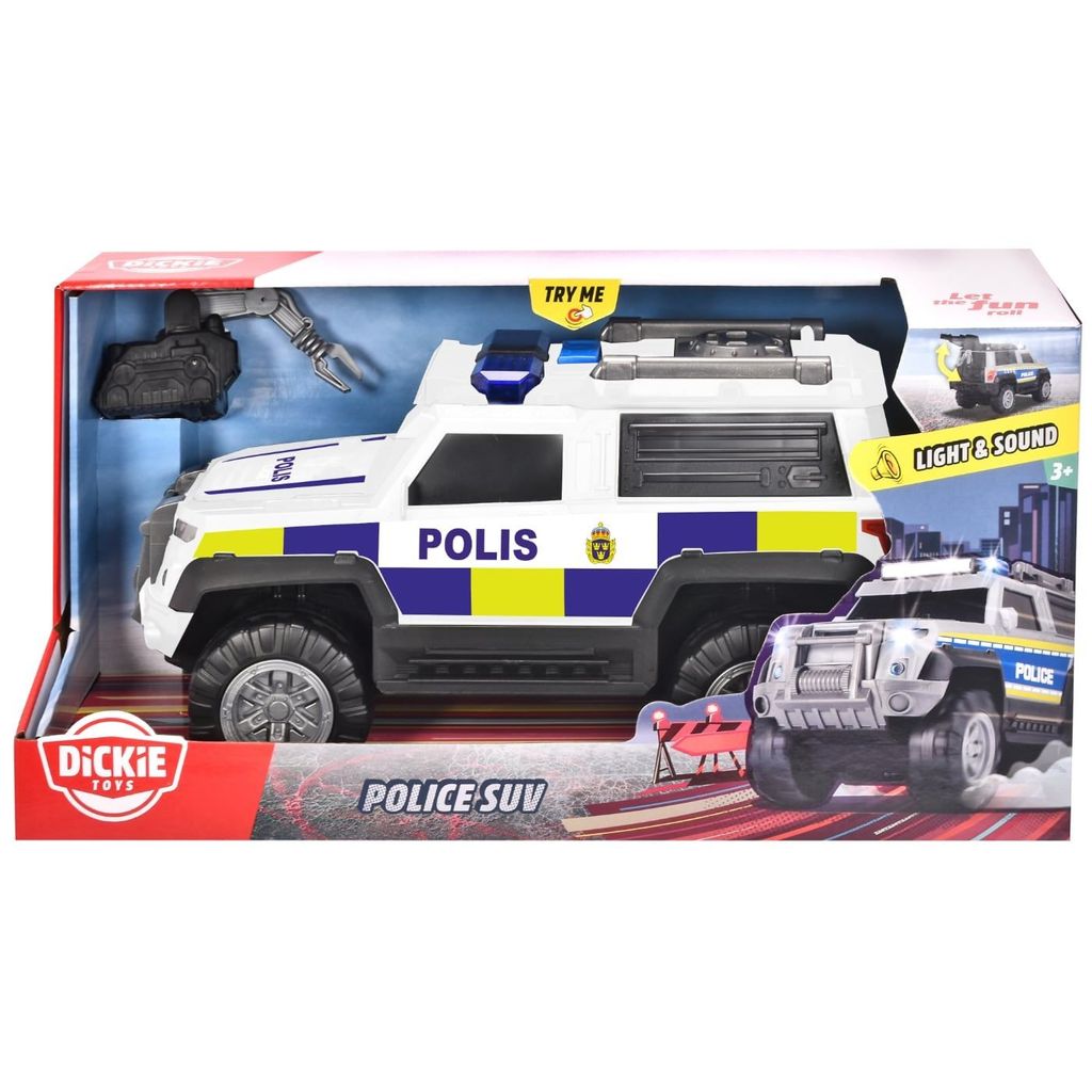 Polisbil i form av en SUV, på gränsen till jeep, från Dickie Toys. Bilen har ljud- och ljusfunktion som med en knapp på taket sätter igång polisbilens sirener. Ljussirenerna på taket blinkar blått, bilens framlyktor lyser och ljud strömmar i form av sirener, motorljud, däckskrik och polisradiokommunikation.