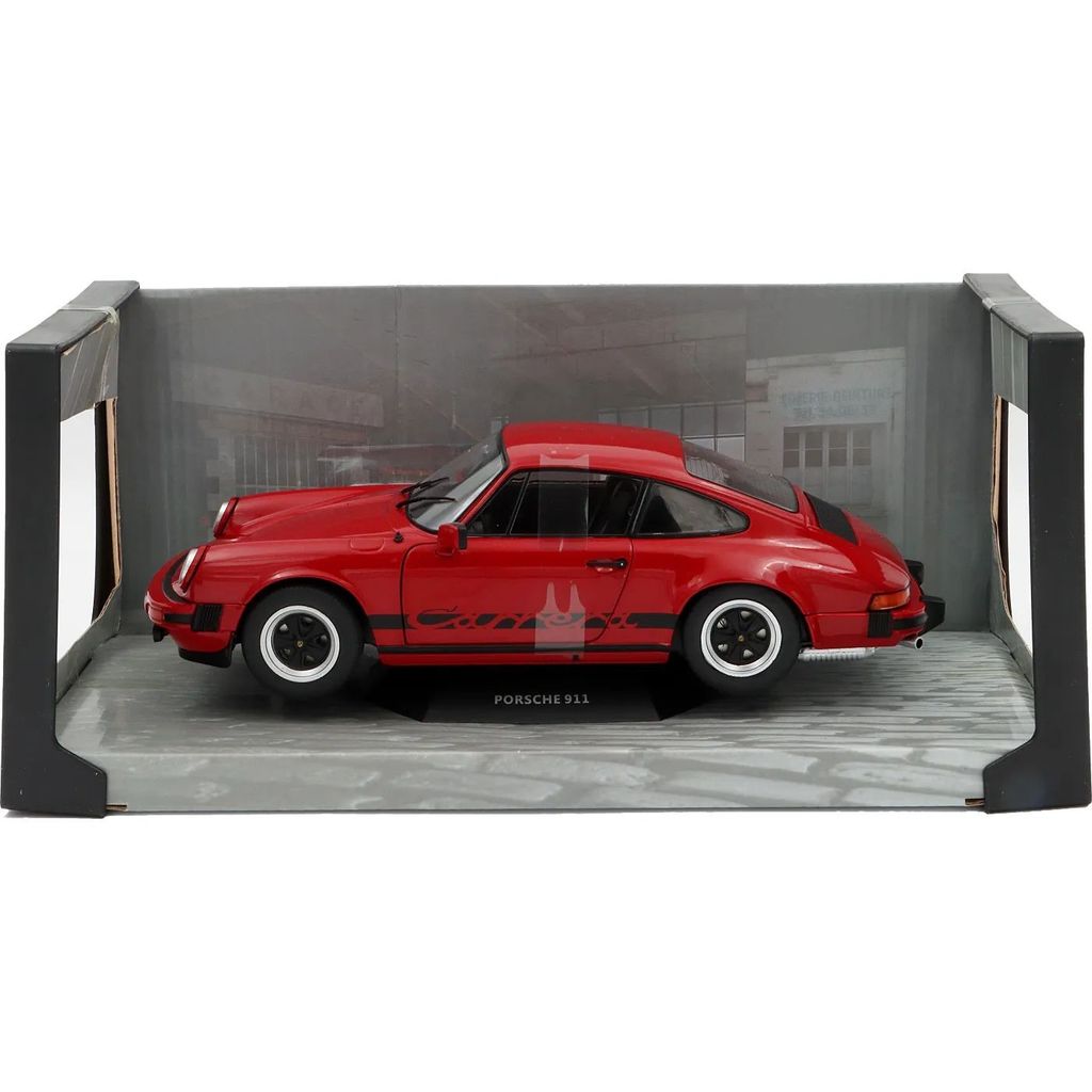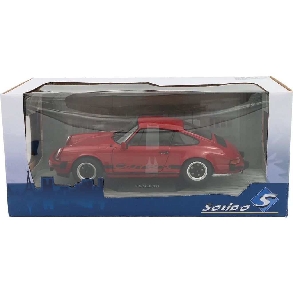Modellbil från Solido där en Porsche 911 (930) Carrera från 1977 stått modell. Skalan är 1:18.