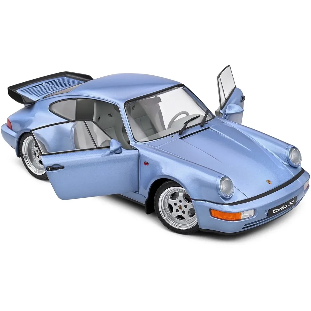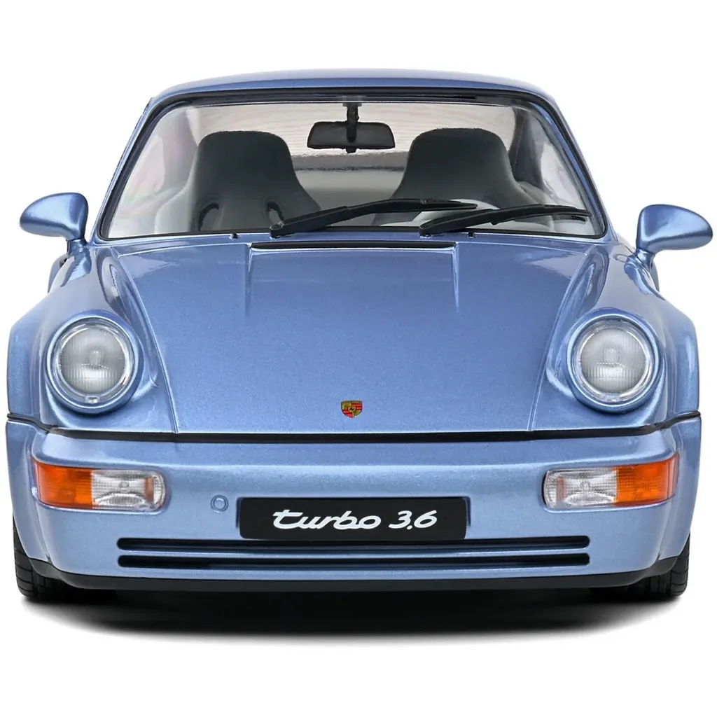 Porsche 911 (964) Turbo, årsmodell 1990, i blått (Horizon Blue Metallic) från Solido. Skalan är 1:18 vilket ger denna en modell en längd motsvarande 23 cm.