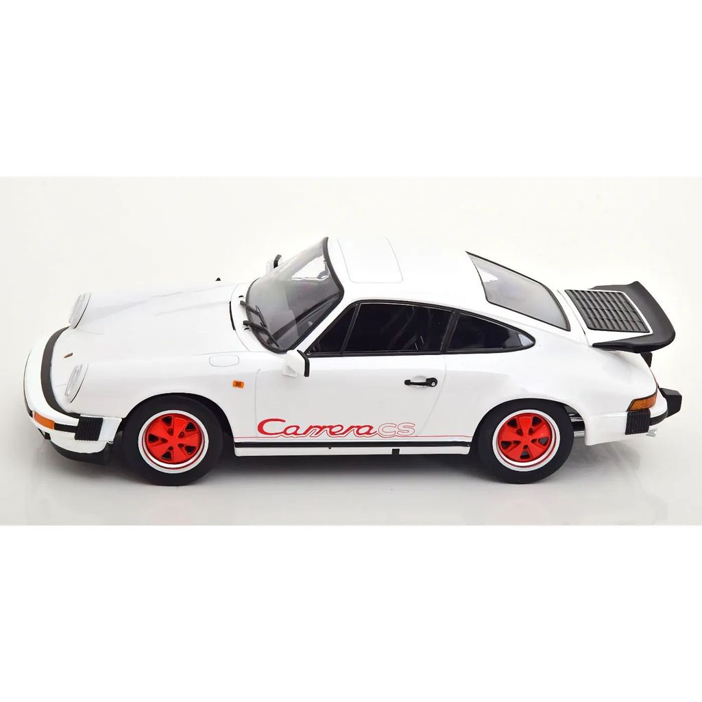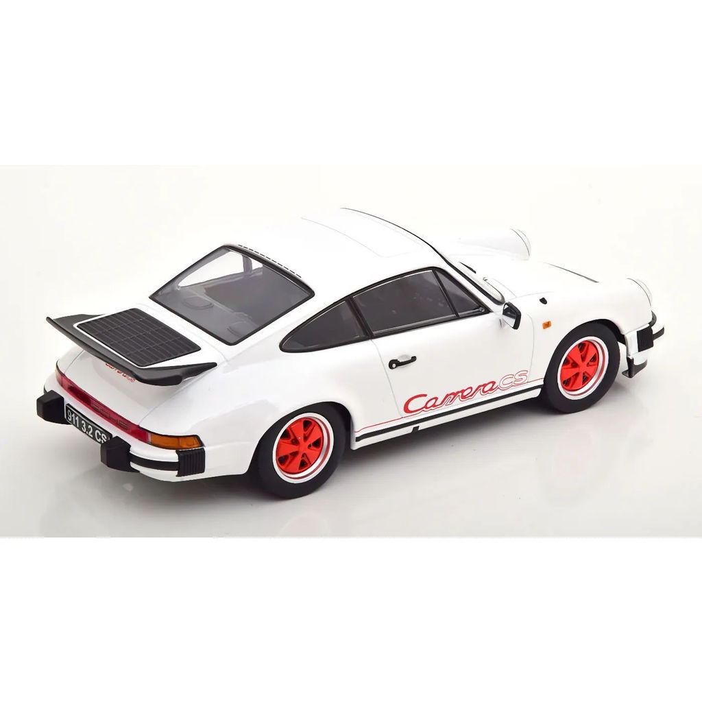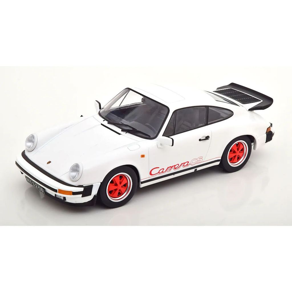 Vit Porsche 911 Carrera 3.2 Clubsport med röda detaljer, årsmodell 1989, som modellbil från tillverkaren KK-Scale i skala 1:18 (längd 24 cm).