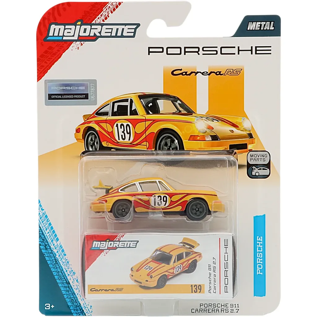 Gul (och lite röd) Porsche 911 Carrera RS 2.7 från Majorette. Längd 7,3 cm.