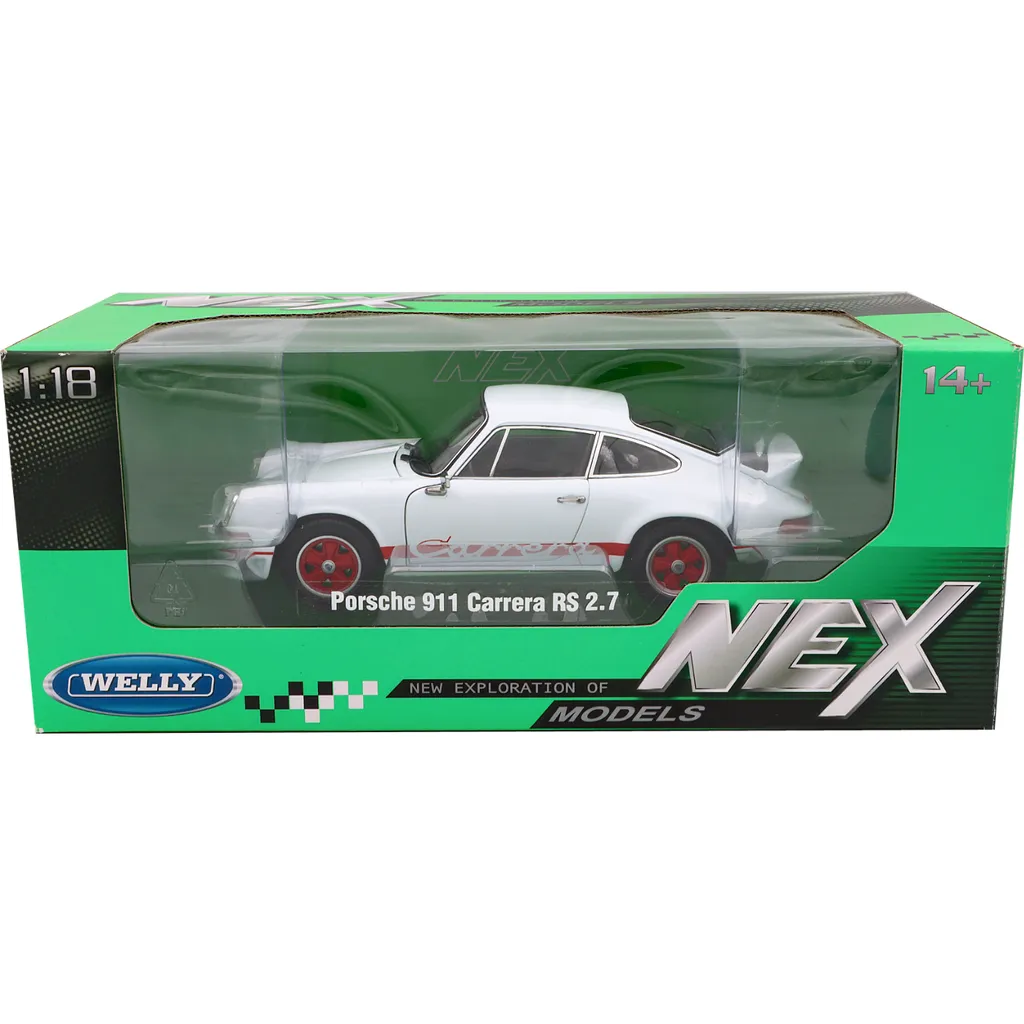 Vit Porsche 911 Carrera RS 2.7 som modellbil från Welly i skala 1:18 (22 cm).