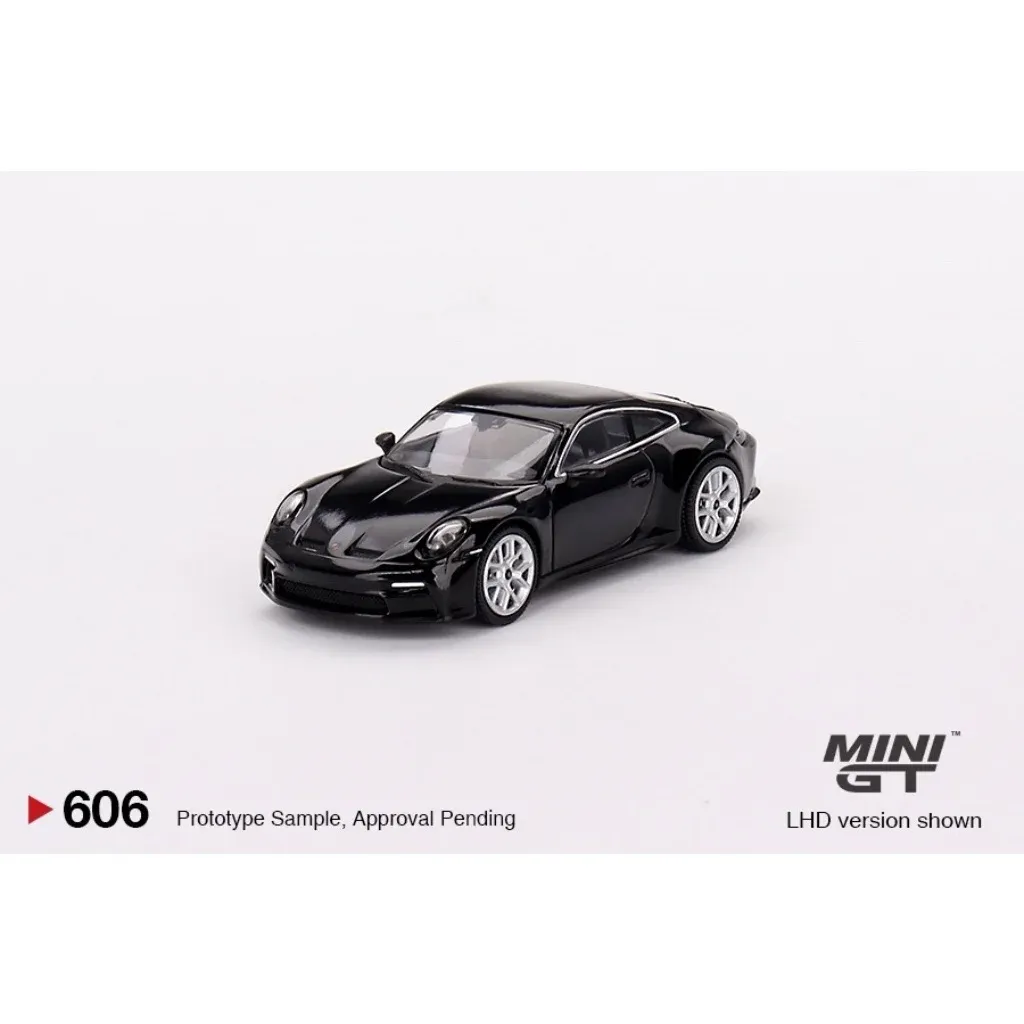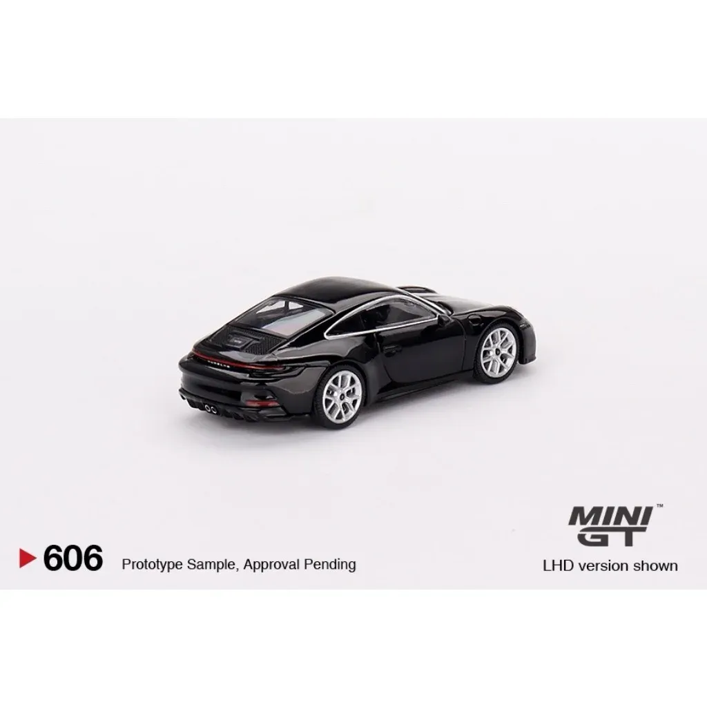 Porsche 911 (992) GT3 Touring i svart från Mini GT i skala 1:64 (ca 7 cm).