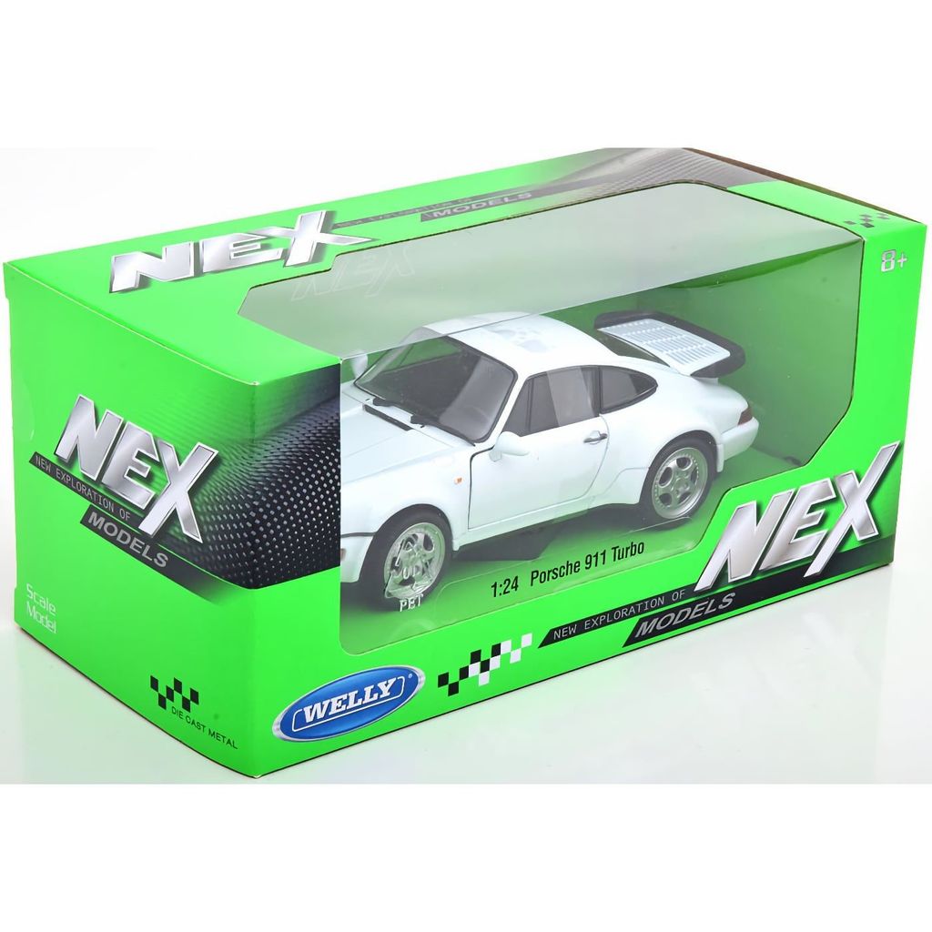 En vit Porsche 911 Turbo modellbil från Welly i skala 1:24 som för denna Porsche innebär ca 17,5 cm i längd. Öppningsbara dörrar och lucka till den bakmonterade motorn. En riktigt klassisk bil som vi här kan erbjuda i modellformat.