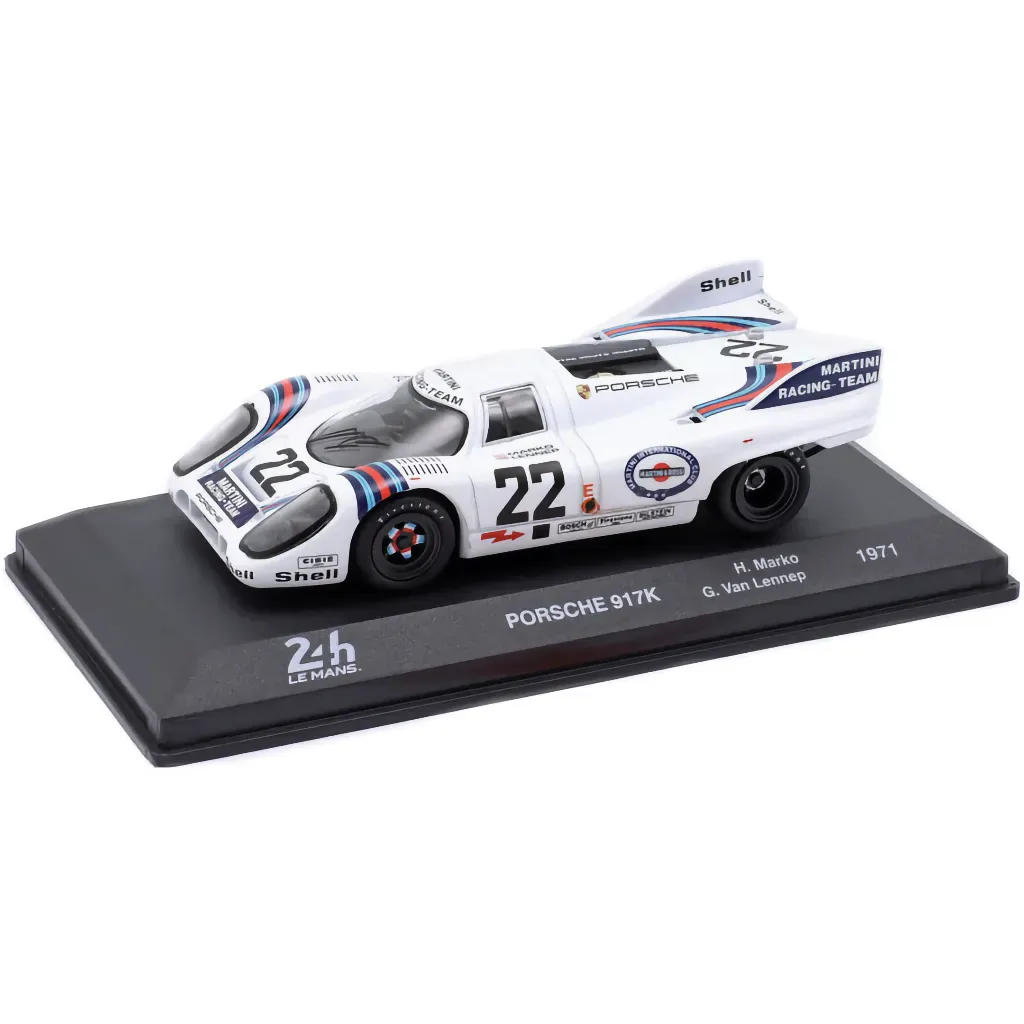 Denna Porsche 917K kördes av Helmut Marko och Gijs van Lennep under 24h Le Mans 1971. Modellbilen är tillverkad av Atlas Editions i skala 1:43 (9,7 cm).