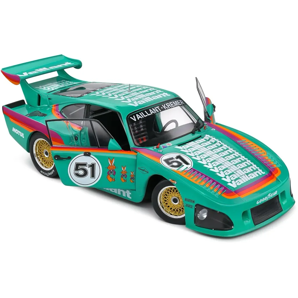 Porsche 935 K3, årsmodell 1977, med Vaillant-livery. Modellbilen är tillverkad av franska Solido i skala 1:18 (26 cm).