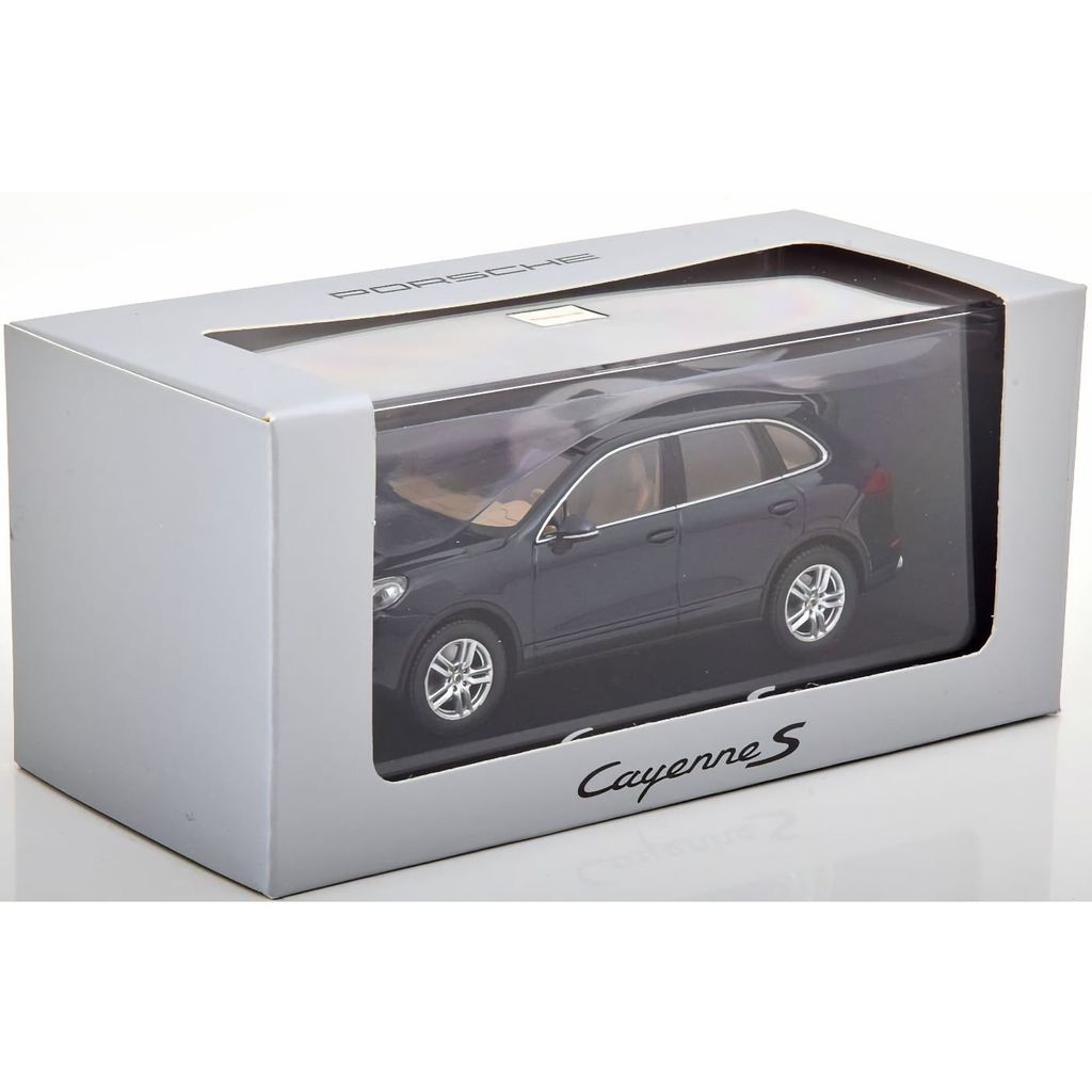 Modellbil i form av en Porsche Cayenne S E2 årsmodell 2014 i skala 1:43. Modellen är producerad av Minichamps.