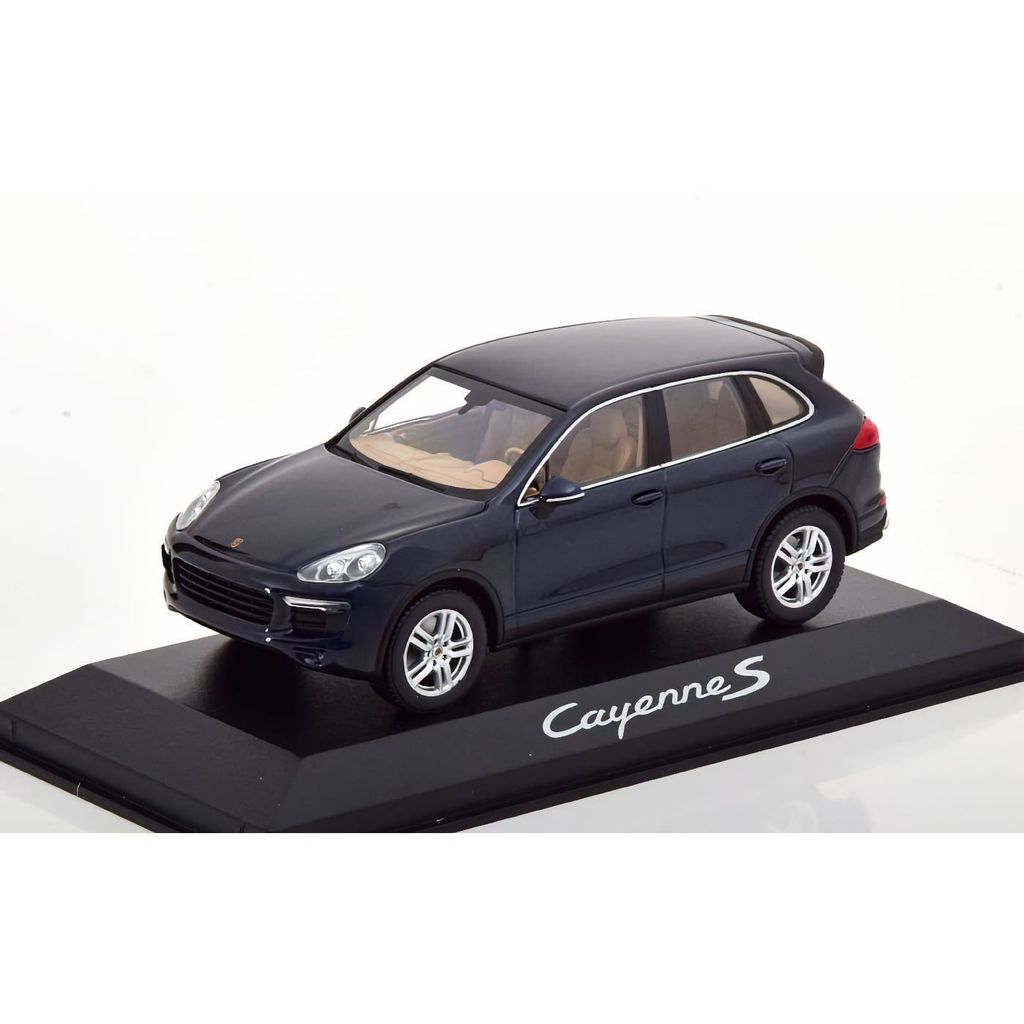 Modellbil i form av en Porsche Cayenne S E2 årsmodell 2014 i skala 1:43. Modellen är producerad av Minichamps. Färgen är mörkblå metallic.