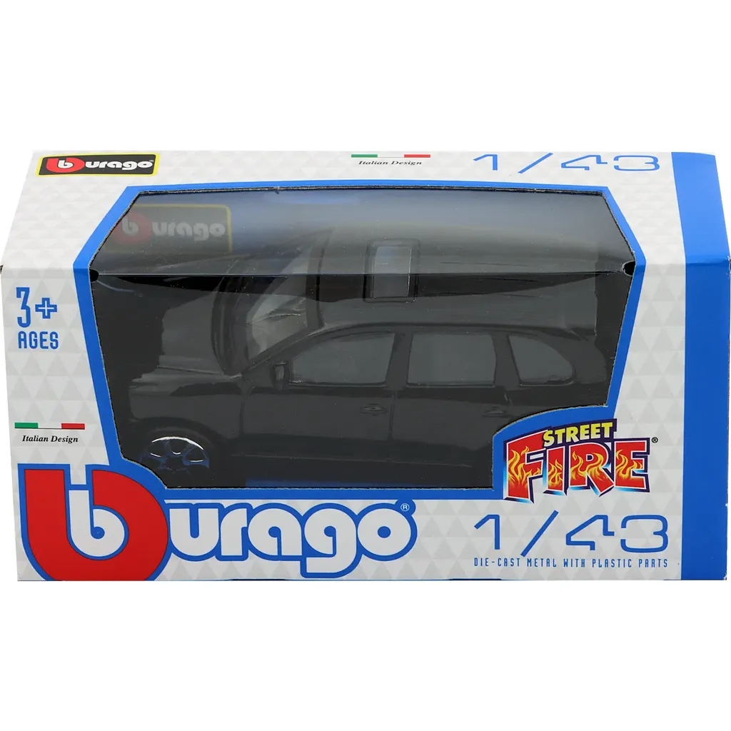 Svart Porsche Cayenne från Bburago i skala 1:43 (11 cm) som leksaksbil.