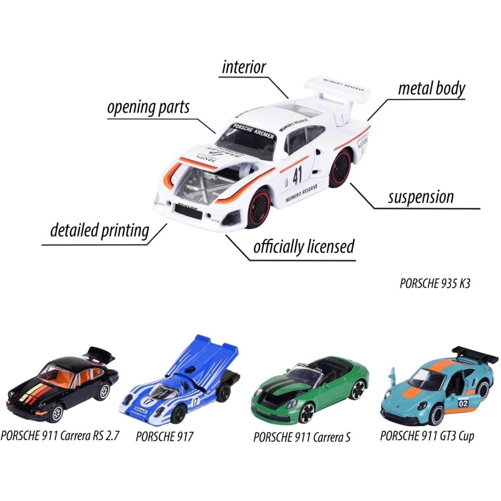 - Porsche 935 K3 (vit, exklusiv leksaksbil för detta set)