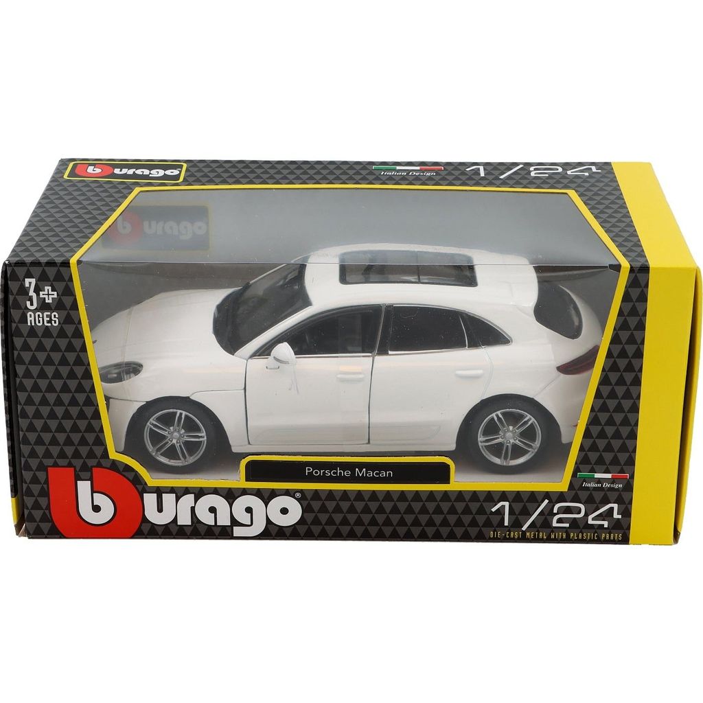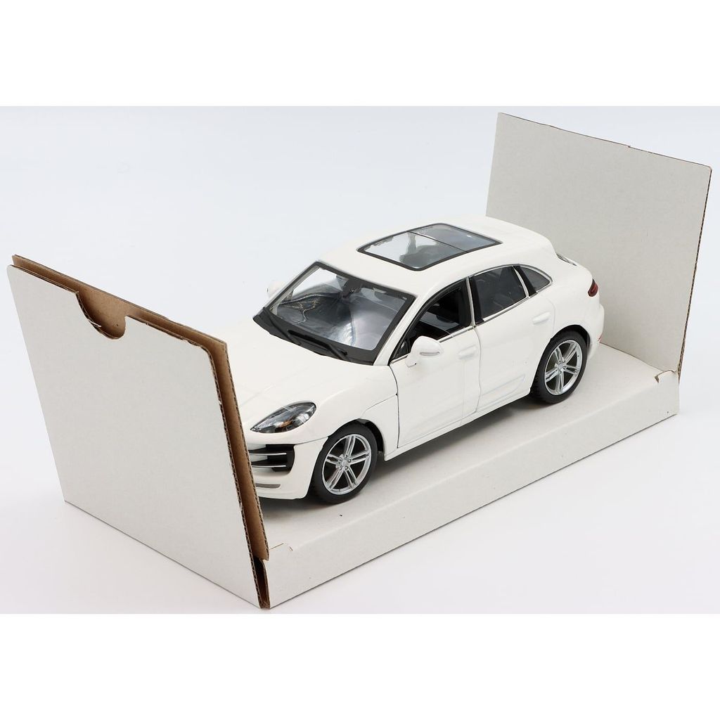 Porsche Macan från Bburago i skala 1:24. Färgen är vit och dörrar samt huv är öppningsbara.