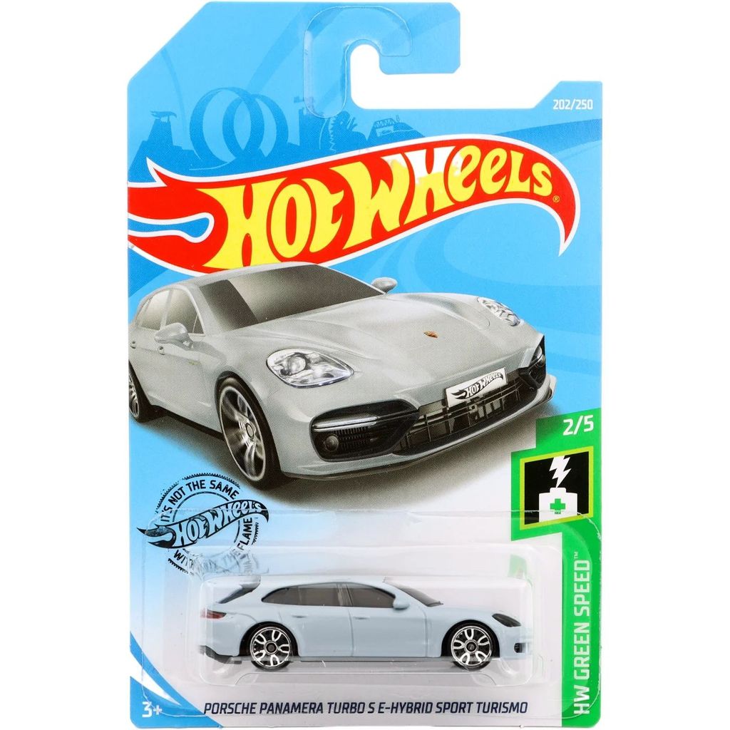 Porsche Panamera Turbo S E-Hybrid Sport Turismo från Hot Wheels och serien HW Green Speed där denna leksaksbil är bil nummer 2/5. Bilen ingår i L-case "international long cards" (C4982) 2019.