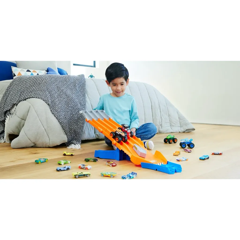 Båda truckarna skickas iväg samtidigt i nedförsbacken för att se vilken som vinner. Banan har 4 fyras spår där truckarna använder två spår vardera, men detta innebär också att banan kan användas till fyra vanliga leksaksbilar och är kompatibel att ansluta till andra Hot Wheels-banor för småbilar.