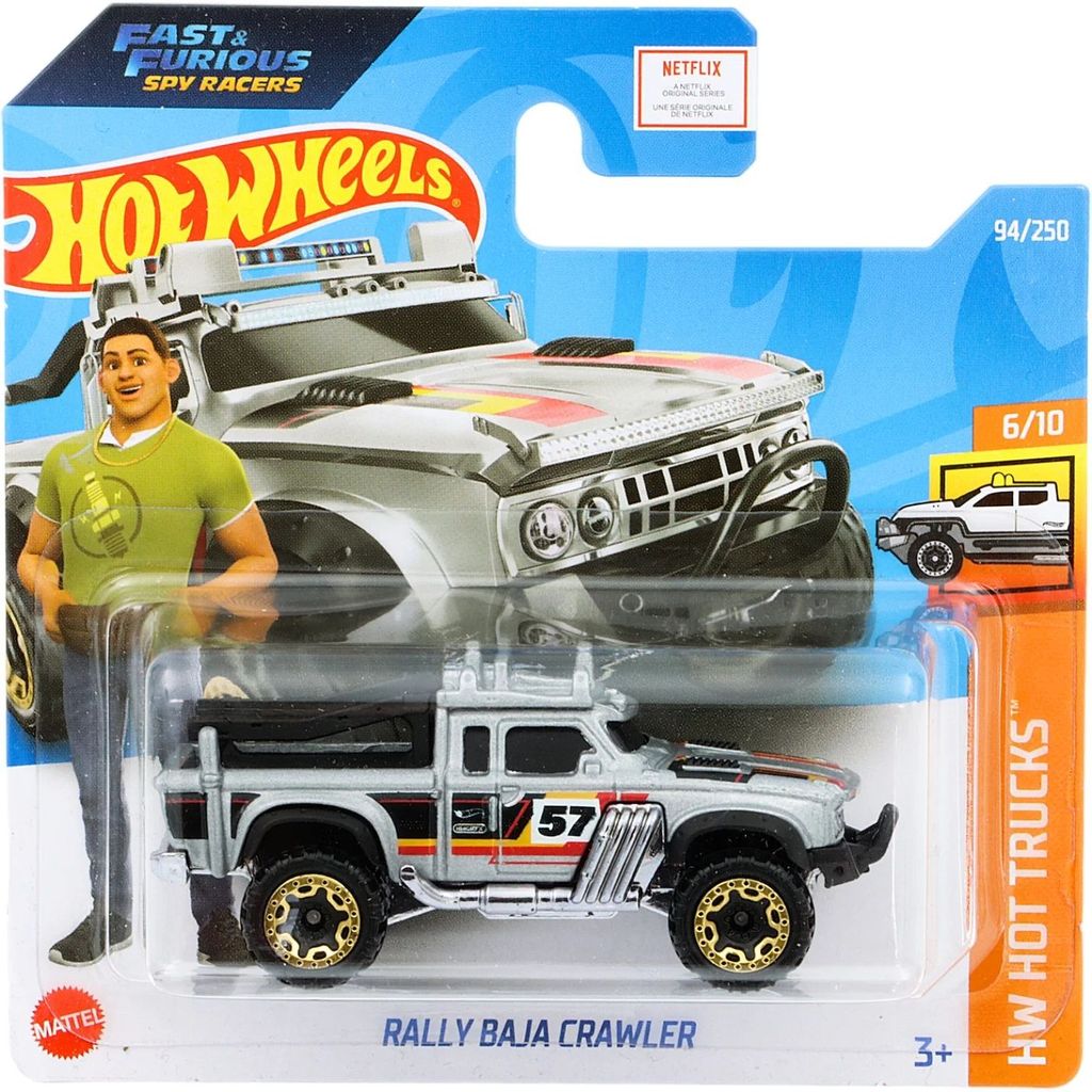 Rally Baja Crawler från Hot Wheels och serien HW Hot Trucks där denna leksaksbil är bil nummer 6/10. Bilen är nummer 94/250 från 2022 och har ett short card (5785).
