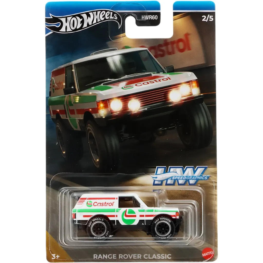 Range Rover Classic (Land Rover) med Castrol-livery från Hot Wheels och serien HW Speed Graphics från 2024. I serien är denna Range Rover bil 2 av 5.