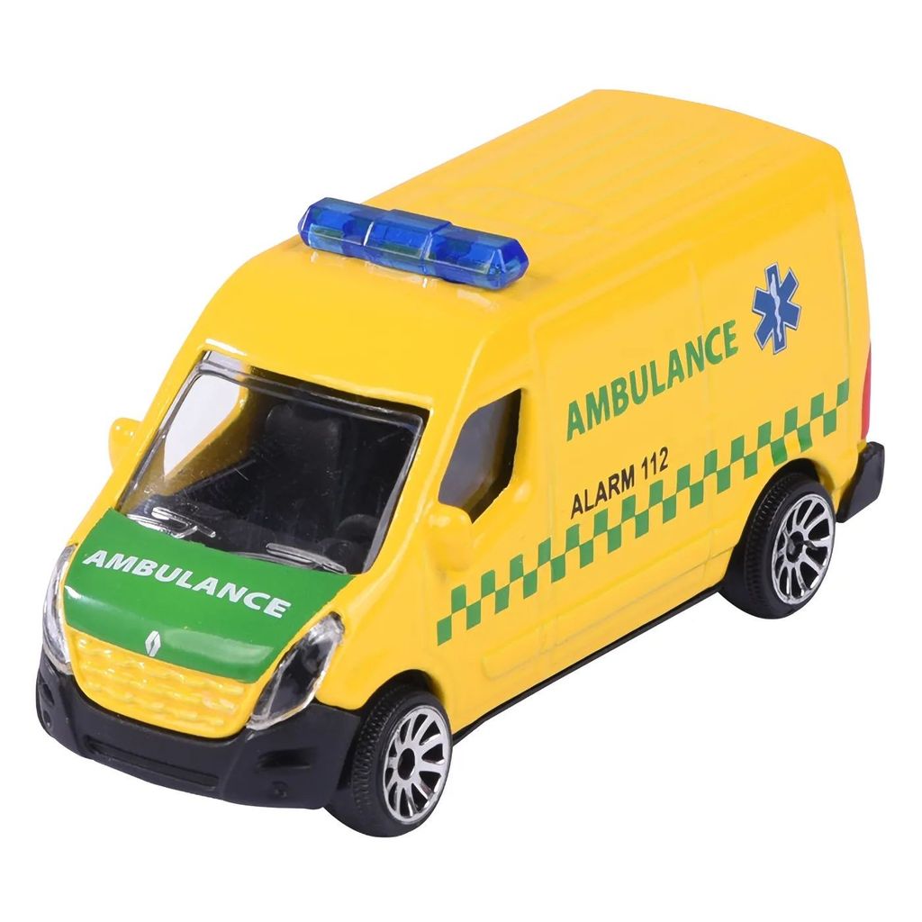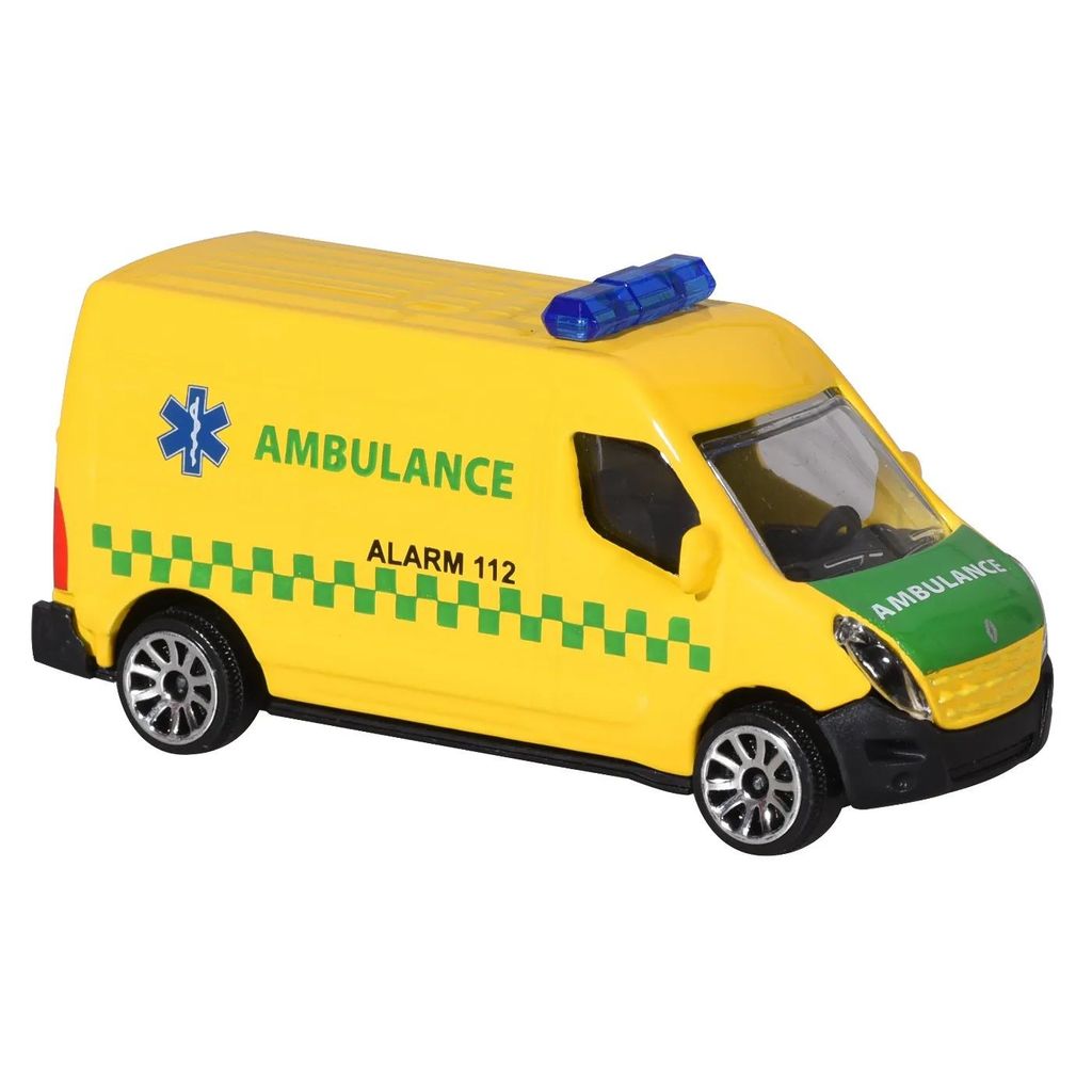 Renault Master som dansk ambulans (Ambulance Alarm 112) från Majorette. Skalan är 1:66 vilket ger oss 7,6 cm leksaksambulans.