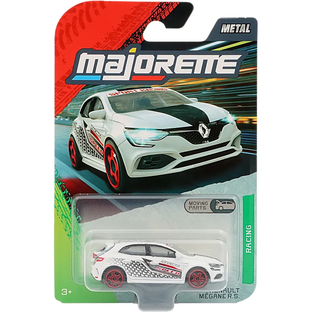 Renault Mégane R.S. från Majorette och serien Racing Premium Cars. Bilen är 7 cm lång och tillverkad i metall med plastdetaljer.