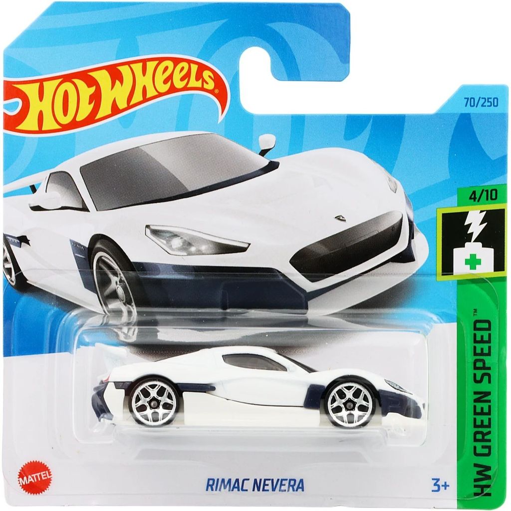 Rimac Nevera från Hot Wheels och serien HW Green Speed där denna leksaksbil är bil nummer 4/10. Bilen är nummer 70/250 från 2023 och har ett short card (5785). Bilens artikelnummer är HKK21. Just denna bil ingår i bland annat M case 2023.