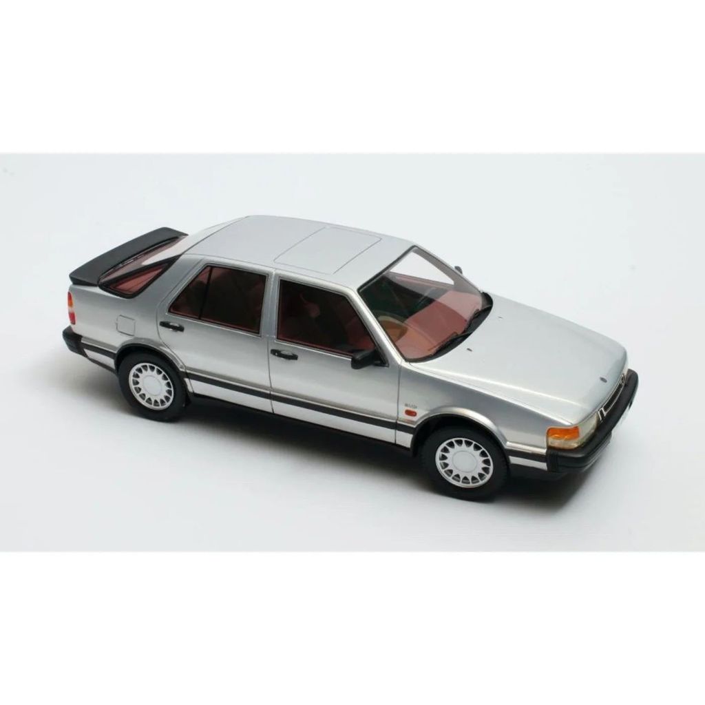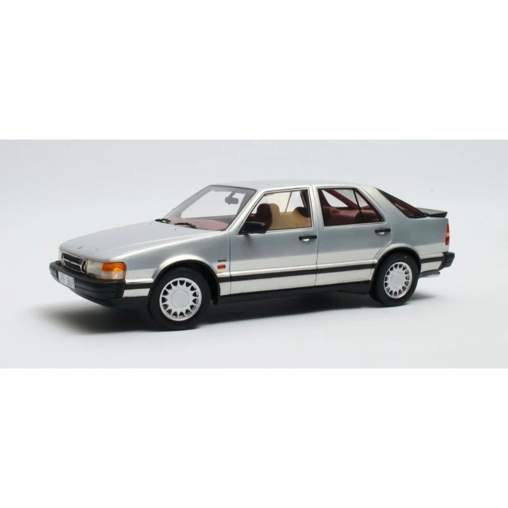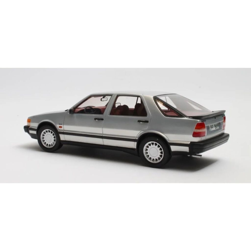 Silvermetallic Saab 9000 Turbo årsmodell 1985-1988 som modellbil från Cult Scale Models i skala 1:18 (längd 25 cm).