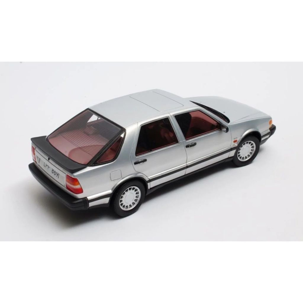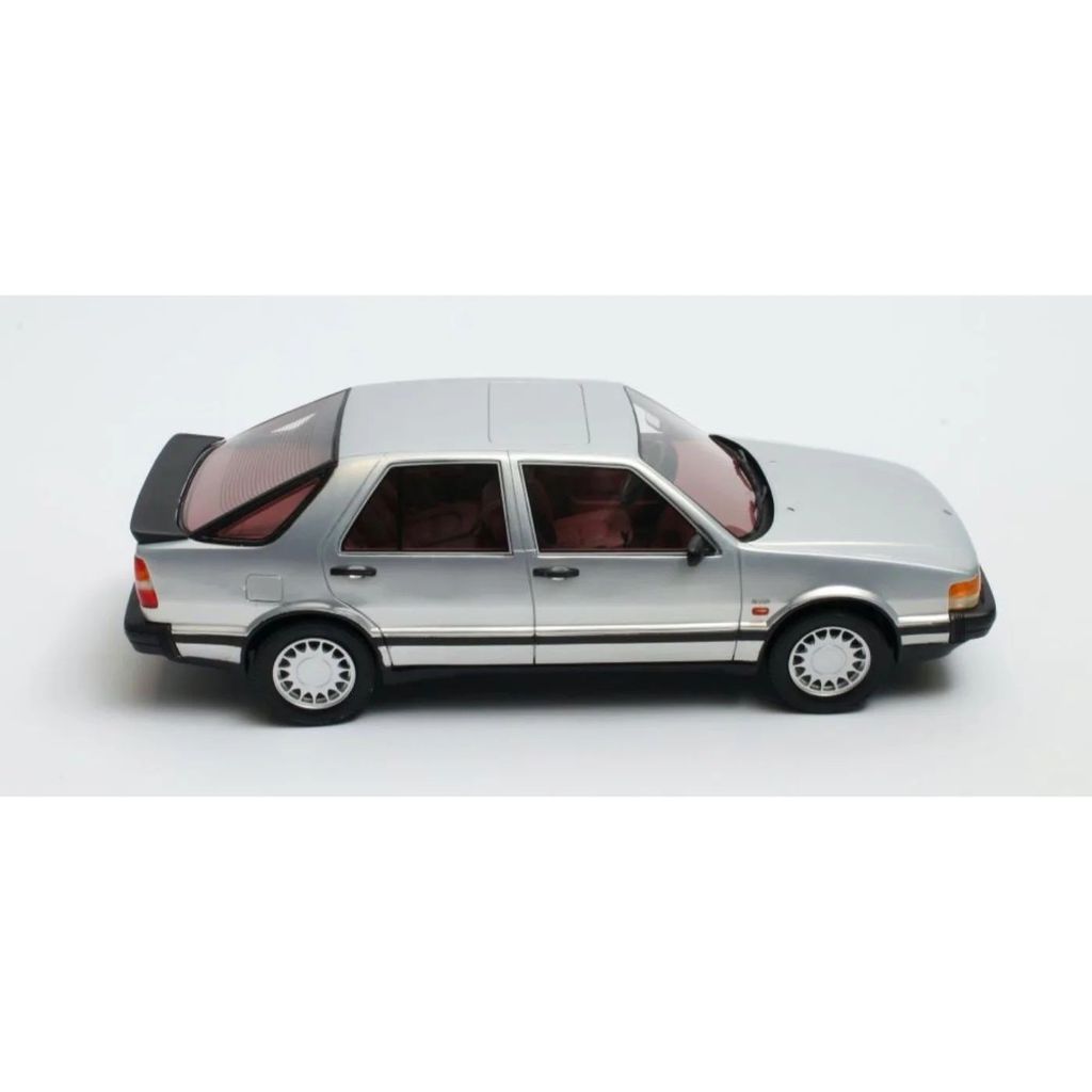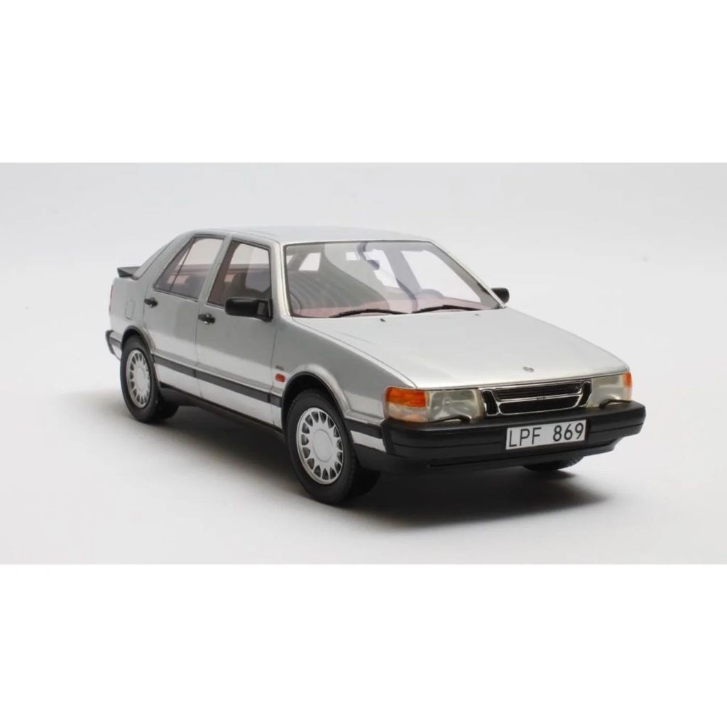 Silvermetallic Saab 9000 Turbo årsmodell 1985-1988 som modellbil från Cult Scale Models i skala 1:18 (längd 25 cm).