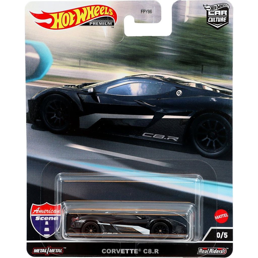 Här erbjuder vi ett fullt set, inklusive den svarta Corvette C8.R ("chase car" 0/5), av Hot Wheels "Car Culture: American Scene" från 2022.