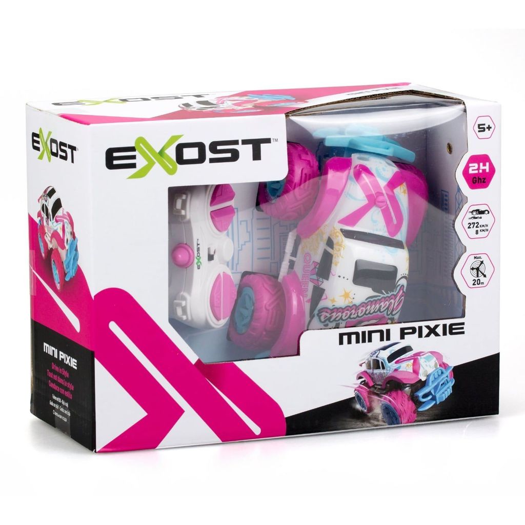 Exost Mini Pixie från tillverkaren Silverlit är en liten rosa radiostyrd bil med en toppfart på 8 km/h och rekommenderas från 5 år. RC-bilen har en vit, blå, gul och rosa design med texten "Queen" på sidan. Då bilen och sändaren/kontrollen kommunicerar över 2,4 GHz så kan flera bilar köras samtidigt.