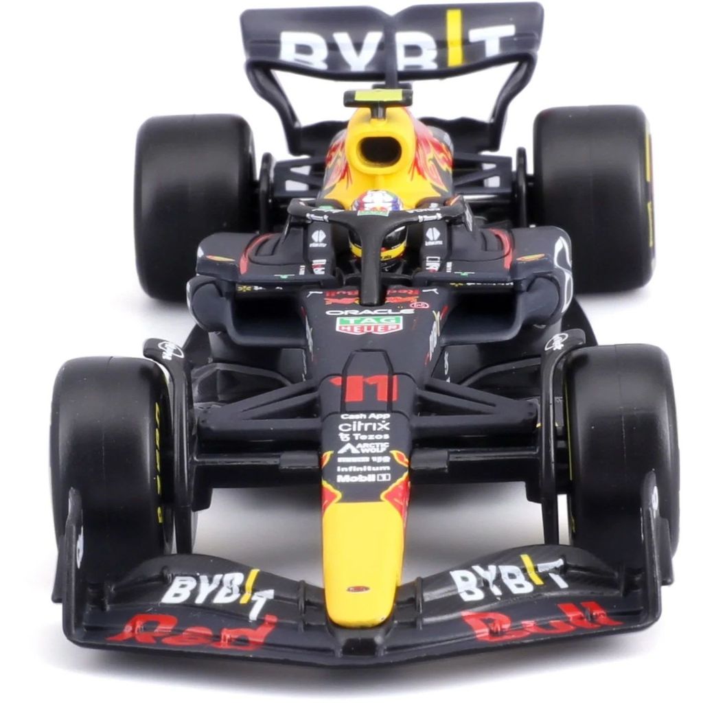 Modell av formel 1-bilen RB18 från Red Bull. Denna bil, med nummer 11, kördes säsongen 2022 av Sergio Perez som slutade på tredje plats med 305 poäng under säsongen. Bilen ingår i teamet Oracle Red Bull Racing från Storbritannien.