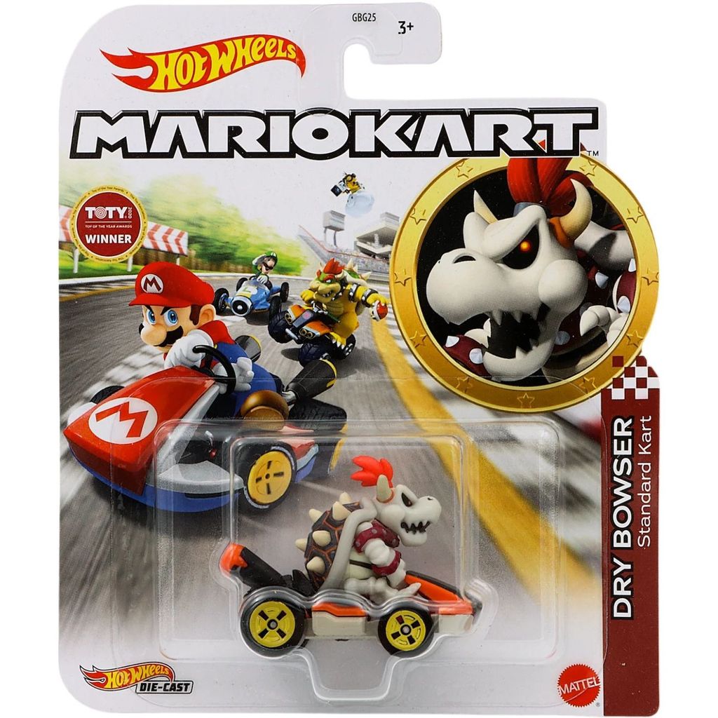 Dry Bowser som leksaksbil från Hot Wheels. Dry Bowser kör en gokart från Mario Kart och just denna gokart är en Standard Kart.