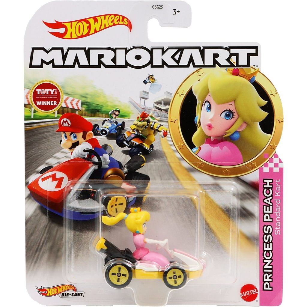 Princess Peach som leksaksbil från Hot Wheels. Prinsessan kör en gokart från Mario Kart och just denna gokart är en Standard Kart.