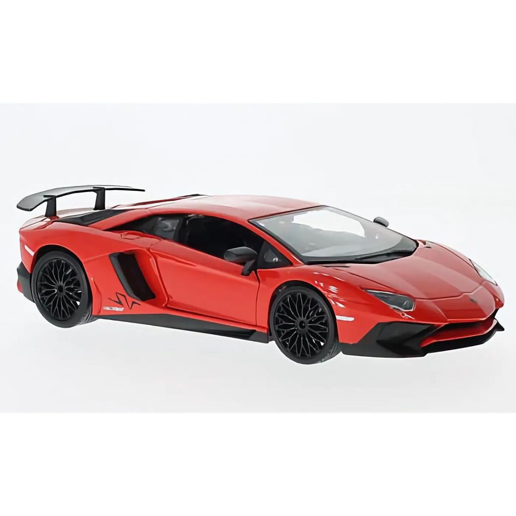 Röd, något åt det orangea hållet, Lamborghini Aventador SV Coupé LP750-4 från Bburago i skala 1:24 (21 cm).