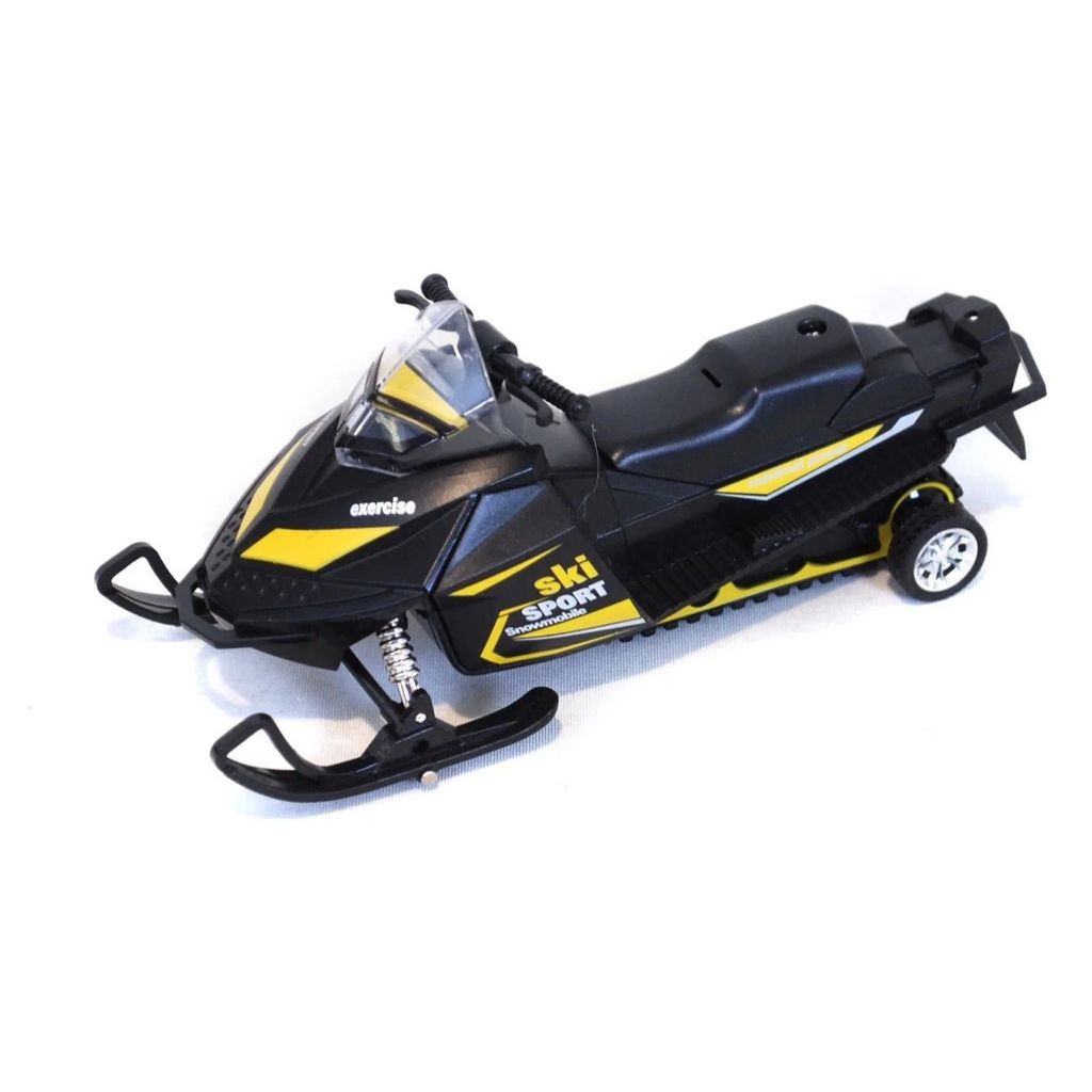 Svart och gul skoter som leksak med pullback samt ljud- och ljusfunktioner. Skotern är 17 cm.