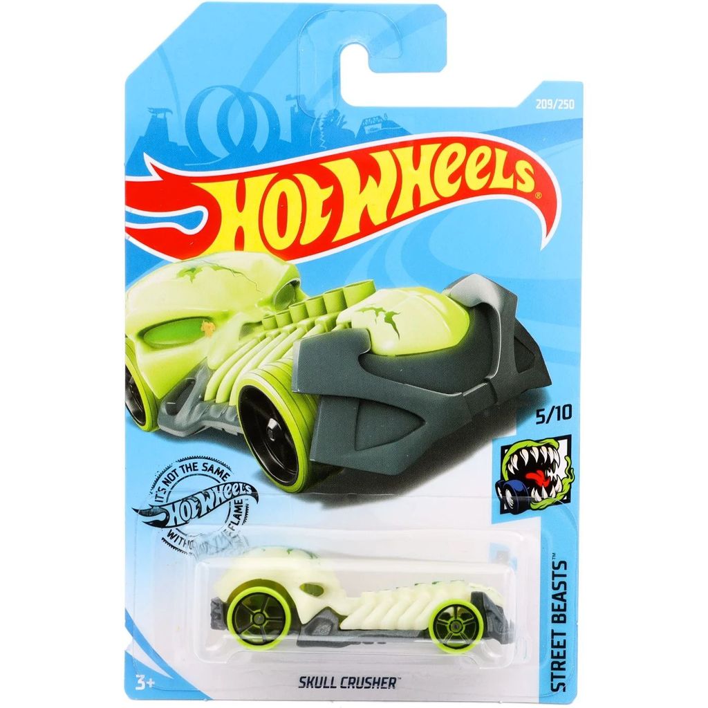 Skull Crusher från Hot Wheels och serien Street Beasts där denna leksaksbil är bil nummer 5/10. Bilen ingår i L-case "international long cards" (C4982) 2019.