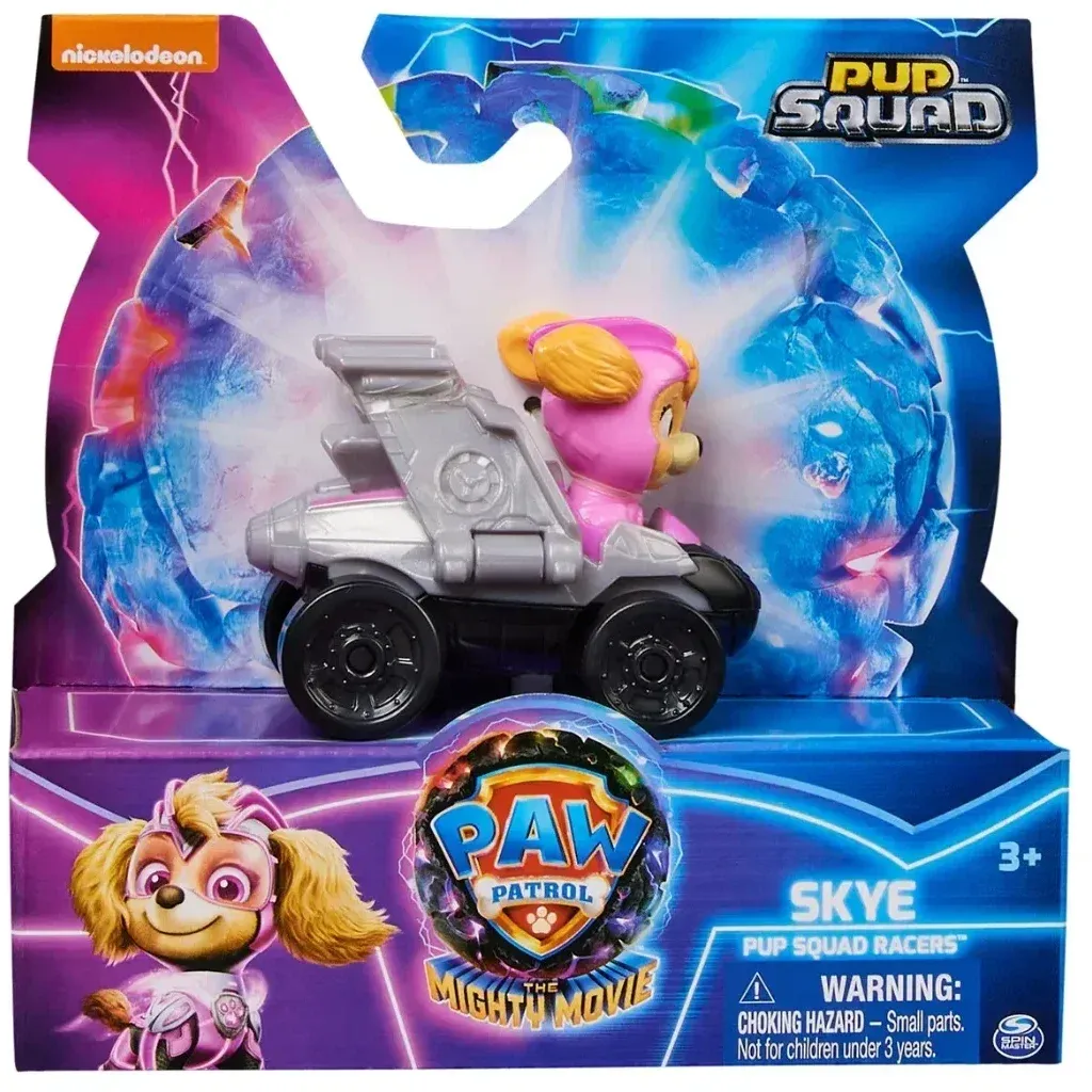 Skye från PAW Patrol i sitt flygplan som liten (6,4 cm) leksaksbil. Bilen ingår i serien Pup Squad Racers.