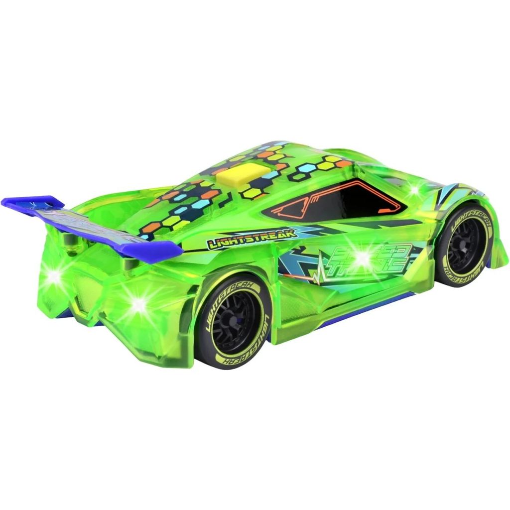 Leksaksbilen Speed Tronic från Dickie Toys serie Streets 'N Beatz är en bil med ljud- och ljus som blinkar och låter när man trycker på den gula knappen på bilens tak.