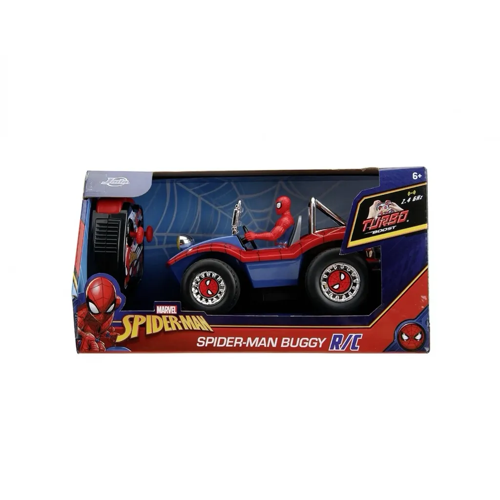 Radiostyrd Spider-Man Buggy från Jada Toys. I buggyn sitter Spider-Man bakom ratten.