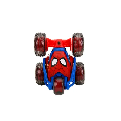 Spider-Man radiostyrd stuntbil från Jada Toys. Bilen kan snurra och göra 360-spinns och volter. Däcken är transparanta och lyser.