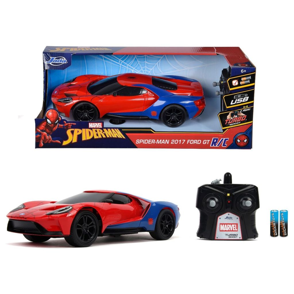 Radiostyrd bil från Jada Toys i form av en Ford GT årsmodell 2017 med Spiderman-tema. En riktigt läcker r/c-bil som uppskattas av alla som gillar Spider-Man.