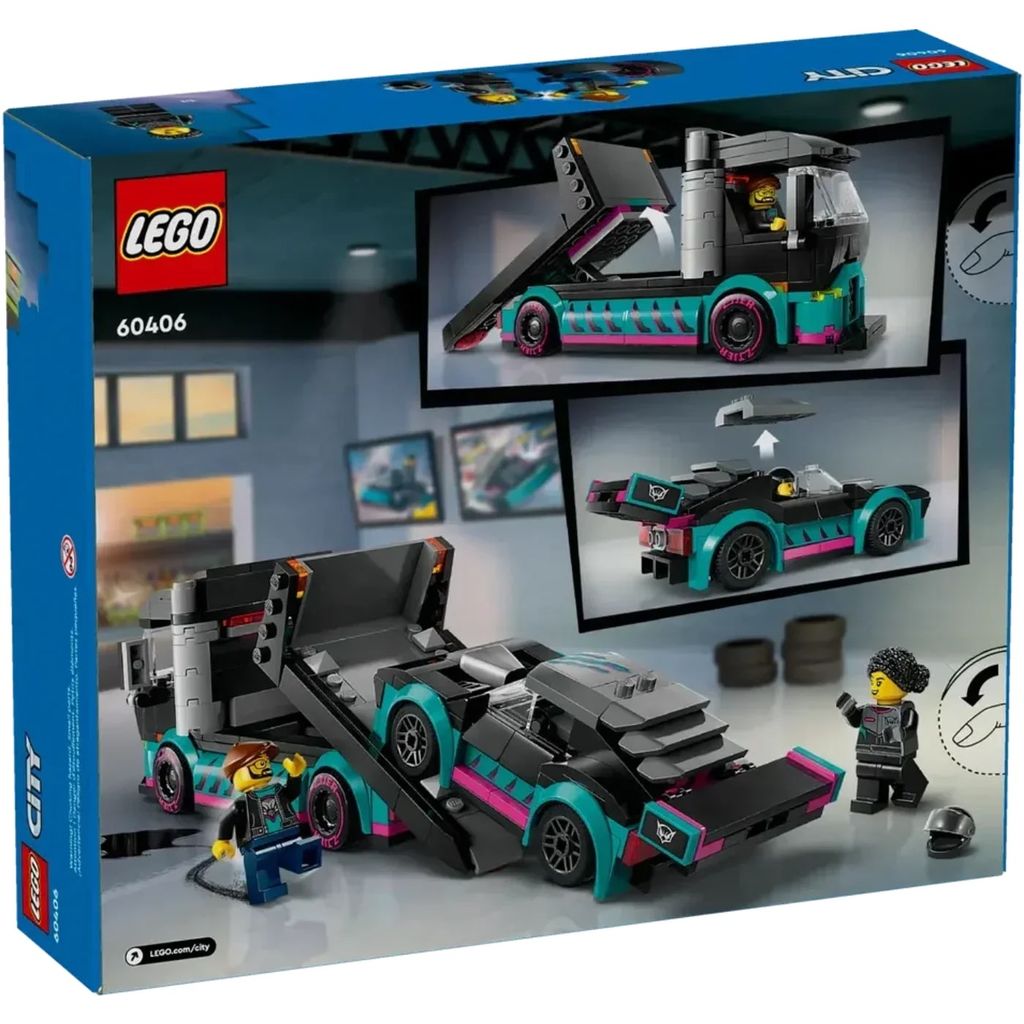 Setet heter på officiellt på engelska "Race Car and Car Carrier Truck" och har byggnummer 60406.