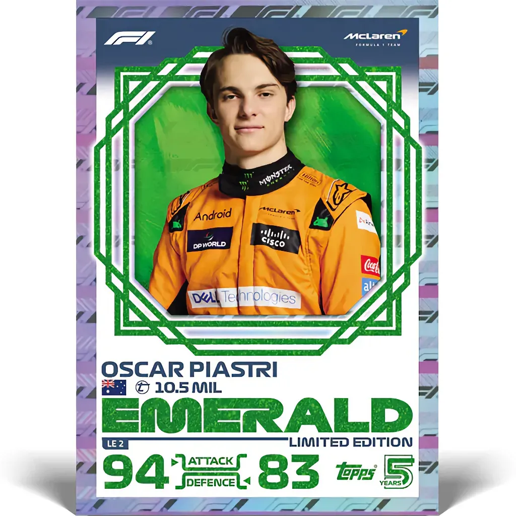 - Garanterat kort: Emerald Oscar Piastri Limited Edition (se bild)