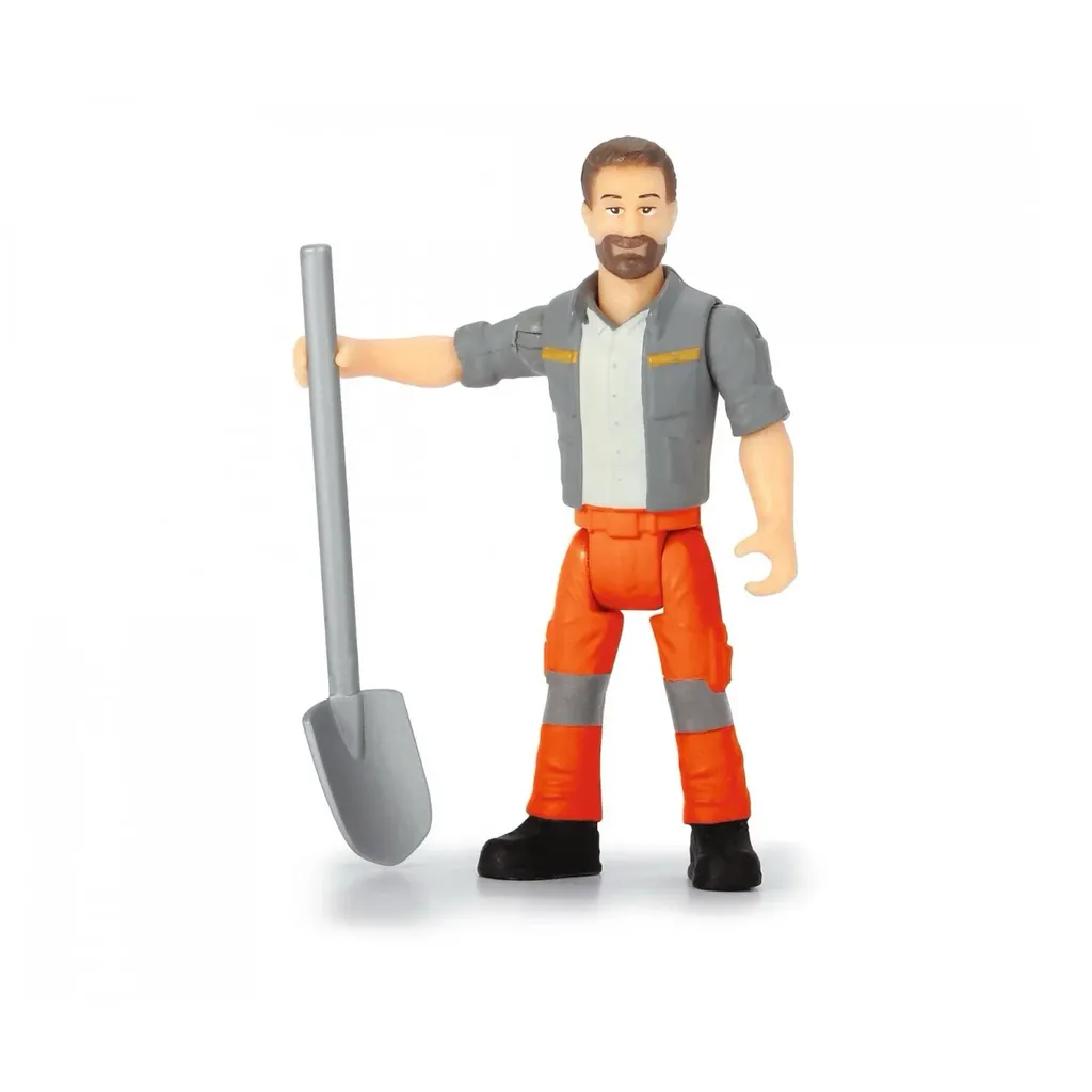 Medföljer gör en figur som kan sitta i maskinen. Även en spade, en sopkvast och en högaffel medföljer.