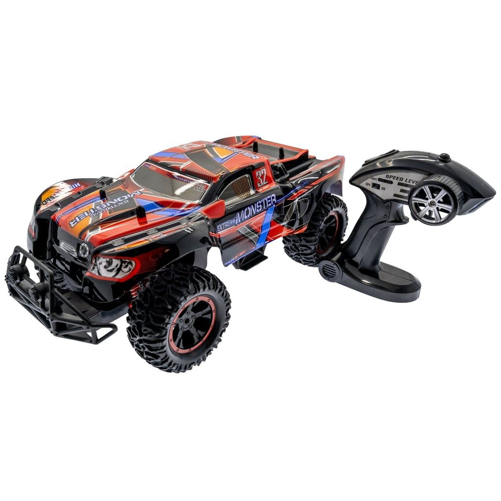 PRODUKT ERSATT AV Radiostyrd Gigantor Monster Truck Gear4Play - 1:8 [borttagen länk]. Monstertrucken har utgått ur vårt sortiment och är nu ersatt med länkad produkt. Stor röd radiostyrd truck som gillar att köras snabbt och har en topphastighet på hela 20 km/h.