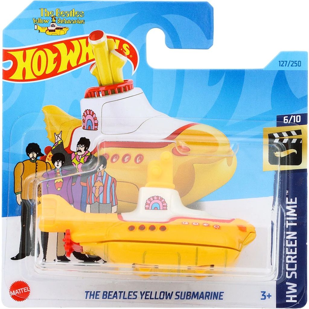 The Beatles Yellow Submarine från Hot Wheels och serien HW Screen Time där denna ubåt är farkost nummer 6/10. Ubåten är nummer 127/250 från 2023 och har ett short card (5785).