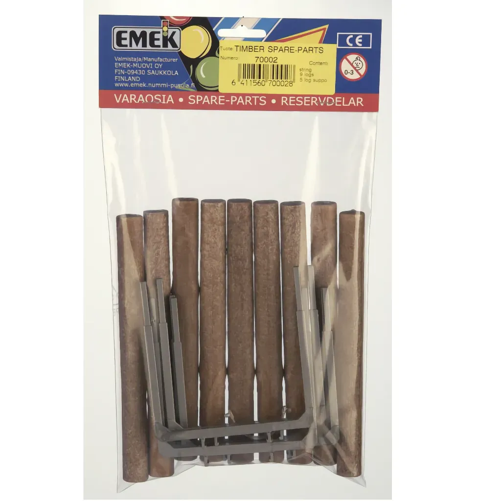 9 timmerstockar och hållare till EMEK:s timmerbilar.