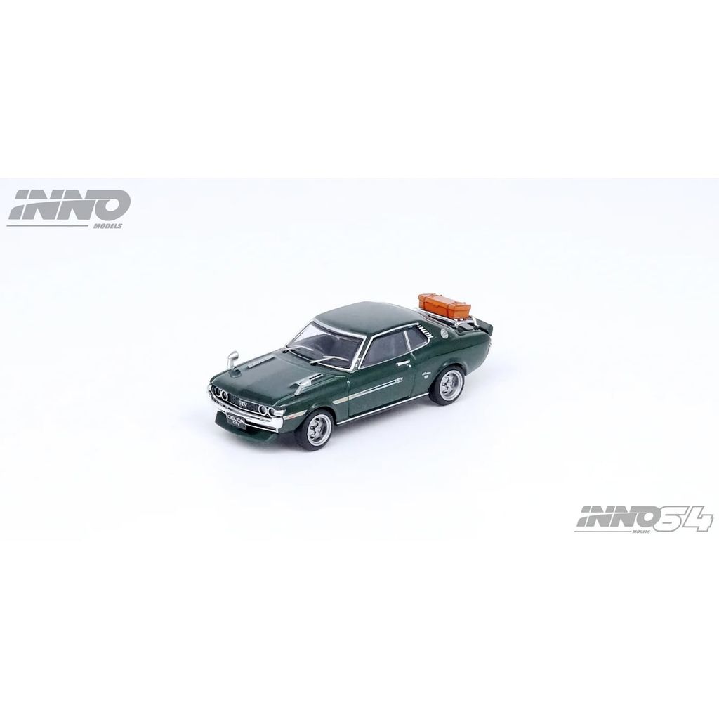 Grön Toyota Celica 1600GTV (TA22) med bagage från Inno Models och deras serie Inno64.