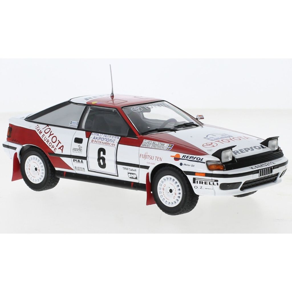 Mikael Ericsson och Claes Billstam körde denna Toyota Celica GT-Four med nummer 6 under Acropolis Rally 1990 (Akropolisrallyt i Grekland). Modellen är tillverkad av Ixo Models i skala 1:24 (18 cm).